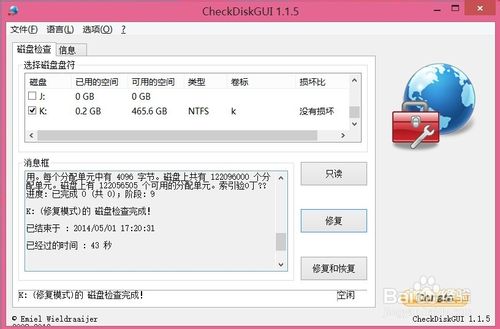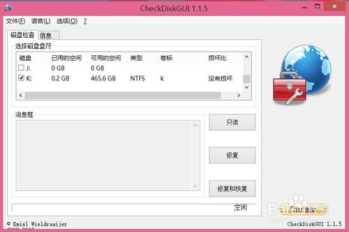1、下載安裝CheckDiskGUI,運(yùn)行界面如下