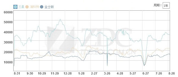 三星、浦科特、影馳三大SSD品牌市場走勢圖