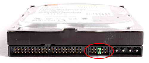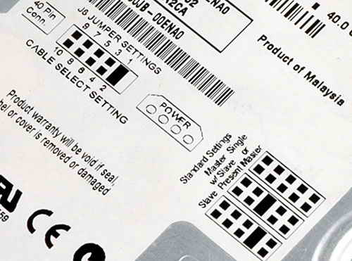 老一代的IDE硬盤,如上圖中的昆騰火球,只有三種跳線設置:Master(主盤)、Slave(從盤)、Cable Select(由硬盤數據線位置決定)。