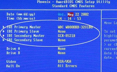如果在“Standard CMOS Features”中看不到硬盤盤符及相關信息,或者硬盤的型號字符變成了亂碼,例如,本來應該是“IC35L060AVVAWA07-O”,可是現在卻變成了“IC#5L0&0AVFA 7-0”,再查看硬盤的參數,也什么都沒有,那么一般說來有兩種原因: