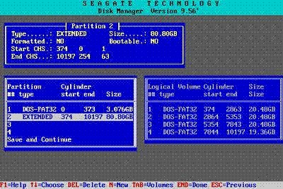 完成分區數值的設定,會顯示最后分區詳細的結果。此時如果對分區不滿意,還可以通過提示的按鍵進行調整。例如,“DEL”鍵刪除分區,“N”鍵建立新的分區。