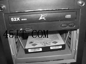 最后要注意的是橡皮筋以7cm長為佳。掛上橡皮筋后,光驅固定螺釘不要擰太緊,以免橡皮筋滑出螺釘縫隙。在與橡皮筋接觸的機箱光驅位處可纏上幾圈膠帶,以免割破橡皮筋。將橡皮筋套在光驅的固定孔洞處就可以再掛硬盤了。最終效果如圖2。