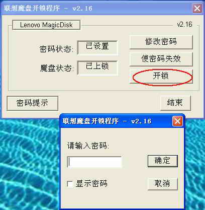 可運行 連接魔盤顯示出的3.5軟盤 或者 隨機光盤//6210//Tools 中的 LMDv216 程序進行 開鎖。