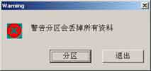 7) 用戶請確認是否要刪除磁盤里面的文件,確認后請繼續點擊“分區”即可,否則點擊“退出”,將資料備份后再執行此操作。