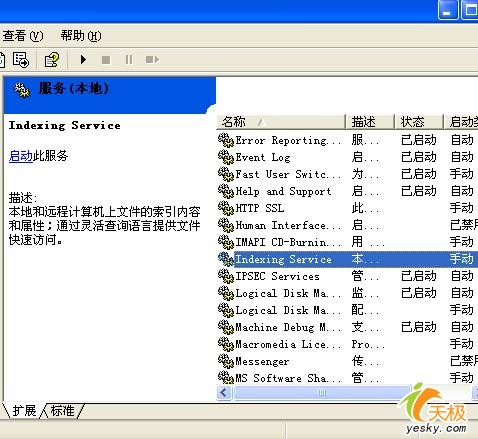 在Windows 2000以上版本的操作系統中,系統都內置有文件索引服務,不過該服務在默認狀態下是被停止運行的。但如果我們不小心將該服務啟用的話,那該服務會在系統處于空閑狀態的時候,對保存在硬盤中的數據文件自動執行索引操作了,那么空閑時的硬盤到時也只能跟著一起“倒霉”了。