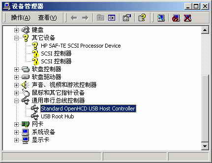首先檢查計算機主板中的USB端口是否被激活,要是沒有被激活的話,就進入到CMOS設置頁面,將“USB Controller”選項設置為“Enable”,要是有“OnChip USB”選項的話,也應該將其設置為“Enable”;當然在查看系統是否已經啟用USB端口時,你沒有必要打開CMOS設置頁面,其實在系統設備管理器窗口中,就能查看到主板是否起用USB功能了;在Win2000系統中,要是看到設備管理器窗口中有“Standard OpenHCD USB Host Controller”選項的話(如圖3所示),就表示計算機的USB2.0功能已經被啟用了。倘若你在WinXP系統中,看到設備管理器窗口中有“PCI to USB Enhanced Host Controller”選項的話,也表明計算機的USB端口功能被激活;