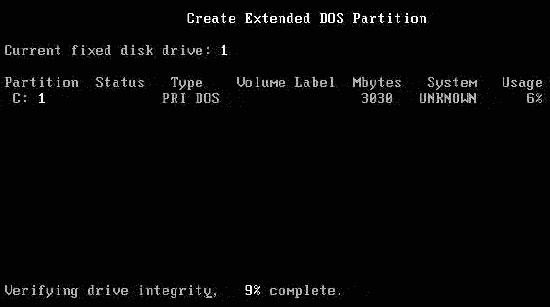 選擇“1”后回車確認,Fdisk開始檢測硬盤……
