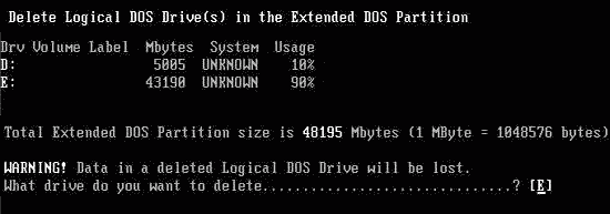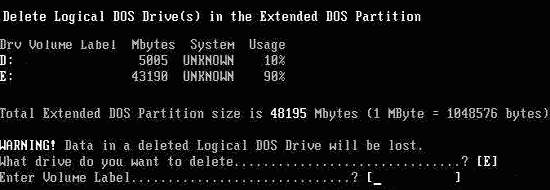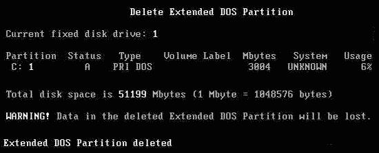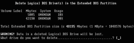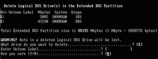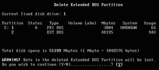 返回到主菜單,再次選“3”,預備刪除擴展分區。