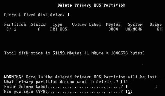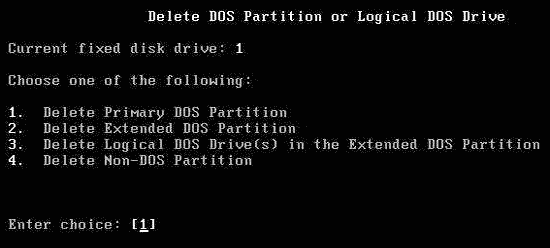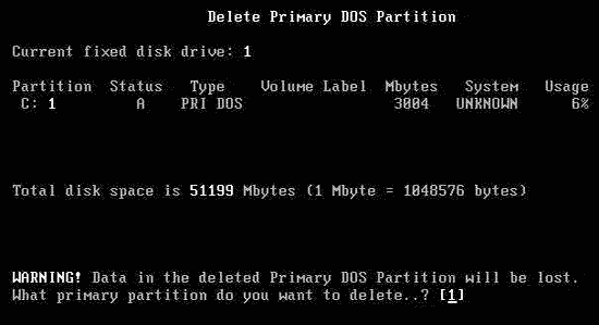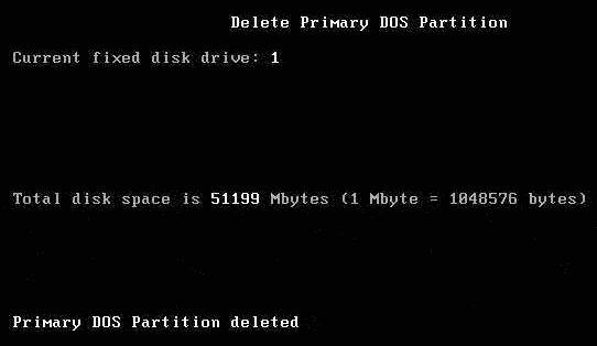 按“1”,表示刪除第一個主分區。當有多個主分區時,需要分別刪除。