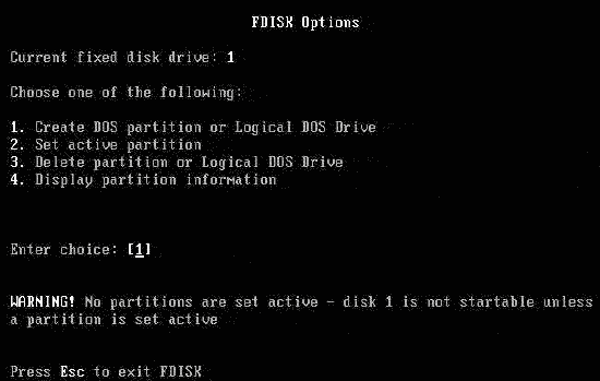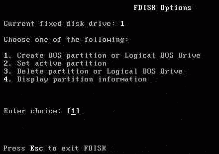 回復至Fdisk主菜單,選擇“1”繼續操作。