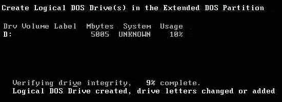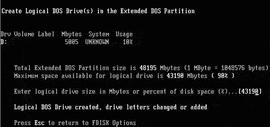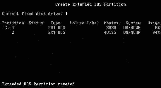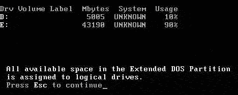 擴展分區創建成功!按ESC鍵繼續操作。
