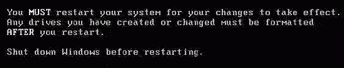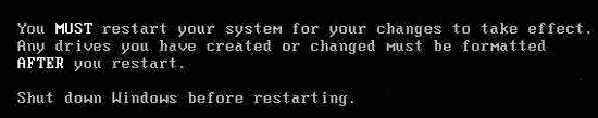 必須重新啟動計算機,這樣分區才能夠生效;重啟后必須格式化硬盤的每個分區,這樣分區才能夠使用。