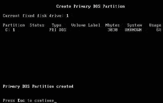 主分區C盤已經創建,按ESC鍵繼續操作。