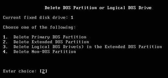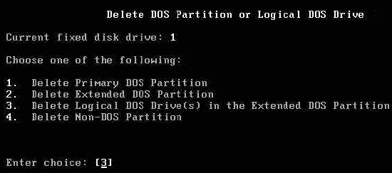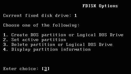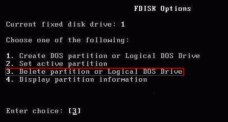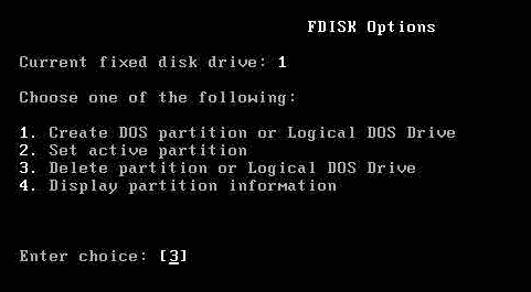 刪除分區,在Fdisk主菜單中選“3”后按回車鍵。