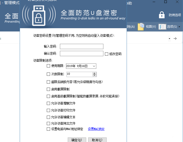 1、把該U盤接入電腦,打開此電腦運行安裝程序,根據(jù)提示一步步安裝,然后返回電腦桌面雙擊打開快捷方式,根據(jù)提示設(shè)置管理模式密碼和密保,點擊確定。