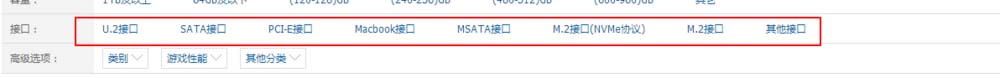 從下圖當中看到具體分為U.2 SATA PCI-E Macbook MSATA M.2 七種類型。其中MSATA M.2為迷你型接口。并且M.2當中有個NVMe協(xié)議,以及M.2(SATA)就是說接口外形一樣,但是協(xié)議不一樣。前者速度更快,后者是傳統(tǒng)速度,價格當然也不一樣。