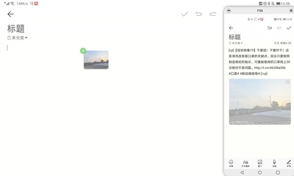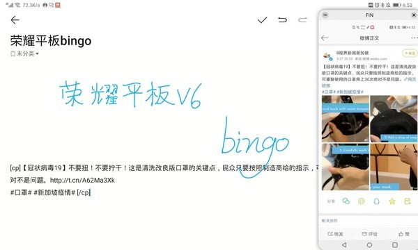 我們可以直接拖動榮耀平板V6上手機屏幕內的圖片進入文檔編輯軟件,直接進行修改編輯,無論是手寫輸入還是文字錄入,一臺設備兩臺終端,極大地縮減了因為數據傳輸所消耗的時間。不僅手機內的文件可以傳入榮耀平板V6中,平板內的數據也可以流暢地傳輸至手機內,一系列操作行云流水。不僅官方應用可以完美適配,一些第三方軟件也同樣支持這樣的拖拽互傳操作,我們可以從網頁、微博、公眾號、新聞App中截取所需圖片和文字,在平板內直接編輯,這樣的工作流程從容中還帶著一點酷炫。
