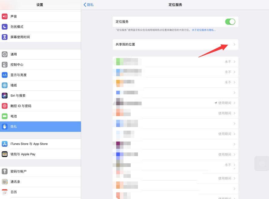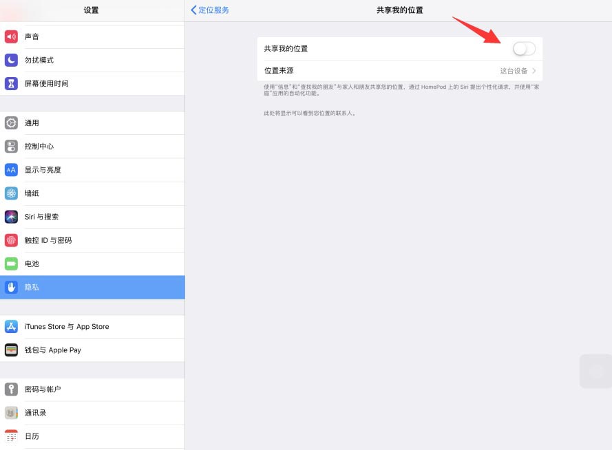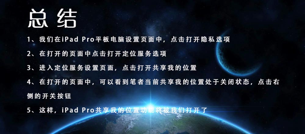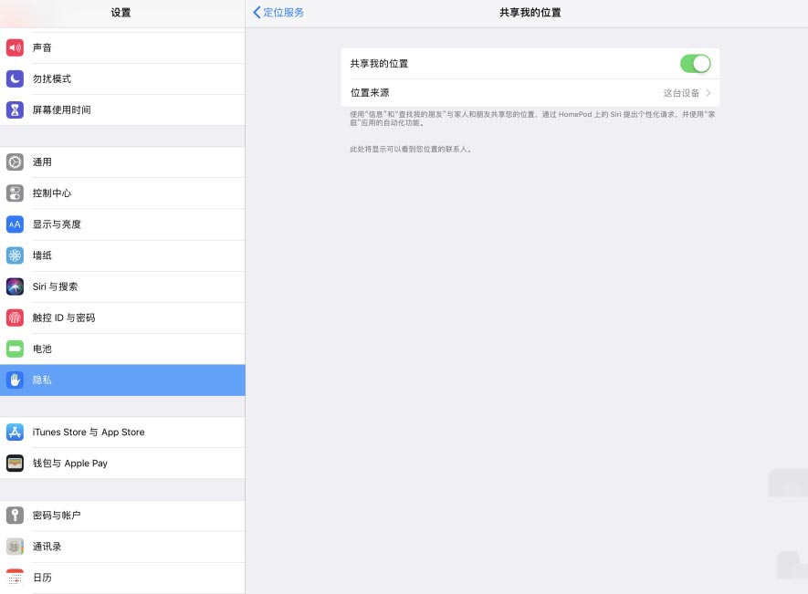 5、這樣,iPad Pro共享我的位置功能將被我們打開了