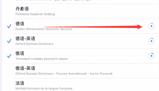4、我們進入到詞典的主頁面內,我們可以看到系統默認的是兩個詞典,一個簡體中文一個簡體中文英語