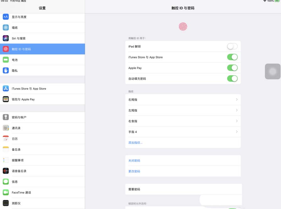 5、這樣,以后iPad Pro想要解鎖屏幕,必須手動輸入密碼才可以,指紋解鎖已經失效