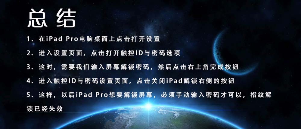 以上就是蘋果iPad Pro屏幕指紋解鎖換成手動密碼解鎖的教程,希望大家喜歡,請繼續(xù)關注武林網。