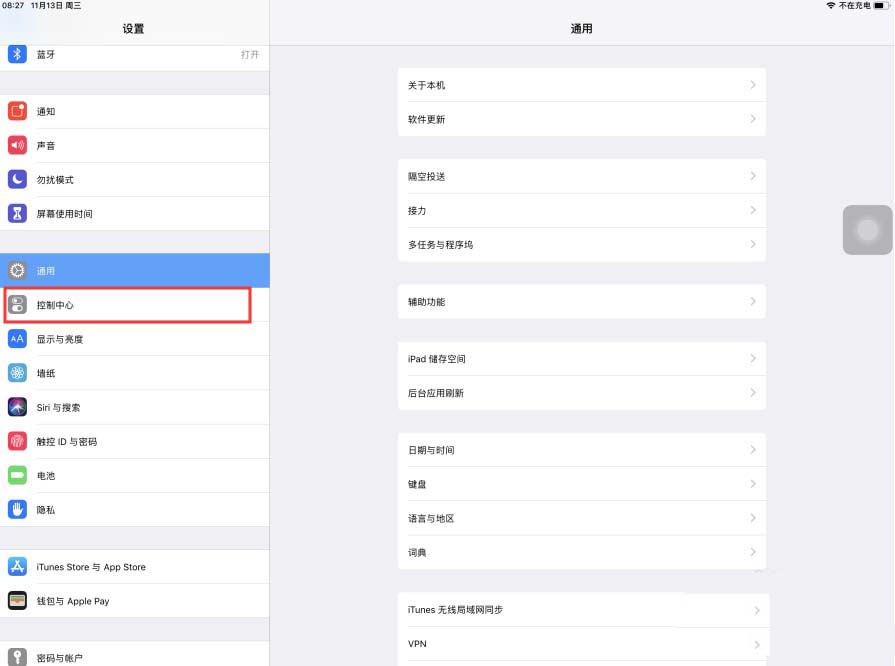 2、在iPad的設置頁面當中,直接打開控制中心欄目