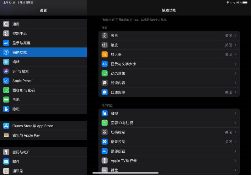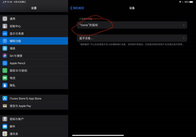 Apple 在設(shè)置頁(yè)面明確標(biāo)注了輔助觸控(鼠標(biāo))功能不支持通過(guò)藍(lán)牙使用妙控鼠標(biāo)和妙控板,我們來(lái)看看能否借助其他方法實(shí)現(xiàn)連接 iPad 與 Magic Mouse 2。