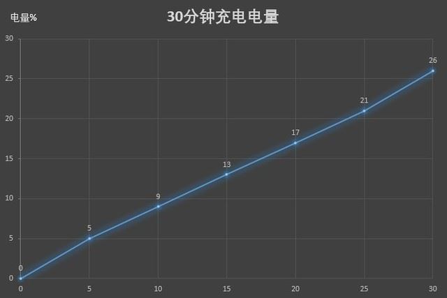 為了測試華為平板M6高能版的充電能力,我們進行了30分鐘充電測試,從圖中可以看出,華為平板M6高能版搭配18W的快充,充電效率非常高,半小時的時間就充上了26%的電。充滿電也只需要2.7個小時。