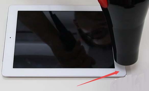 2、我們用吹風機給ipad的周圍加熱個2分鐘,可用一點點的酒精擦在周圍,都是為了讓屏幕膠松軟,這樣可以輕松取下屏幕