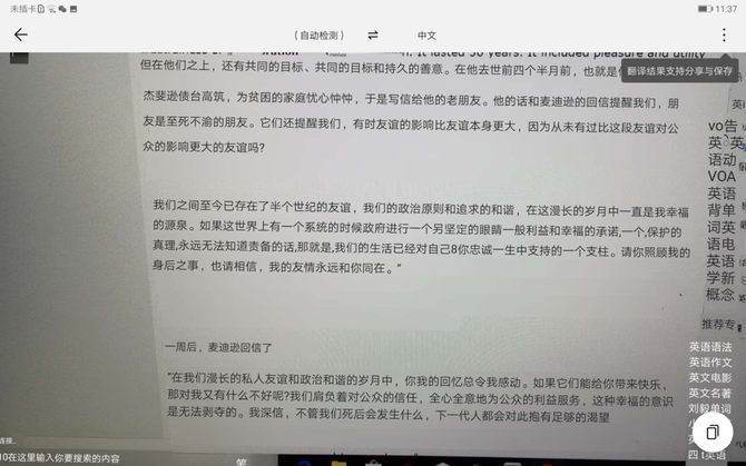 智慧視覺的翻譯功能也非常強大,可以快速的進行全文翻譯。實際測試翻譯速度非常快,幾乎是馬上呈現(xiàn)中文內(nèi)容。
