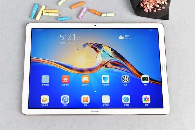 全新的華為平板M6采用了2560*1600 2K級高清屏幕,16:10的長寬比,整個屏幕采用了2.5D弧面玻璃設(shè)計,握持手感非常出色。并且采用初始橫屏設(shè)計,可以說天生為影音而生。橫屏?xí)r右側(cè)是HOME按鍵,支持指紋解鎖;上部是前置的800萬像素攝像頭,跟家人聊天、網(wǎng)友視頻,非常實用。