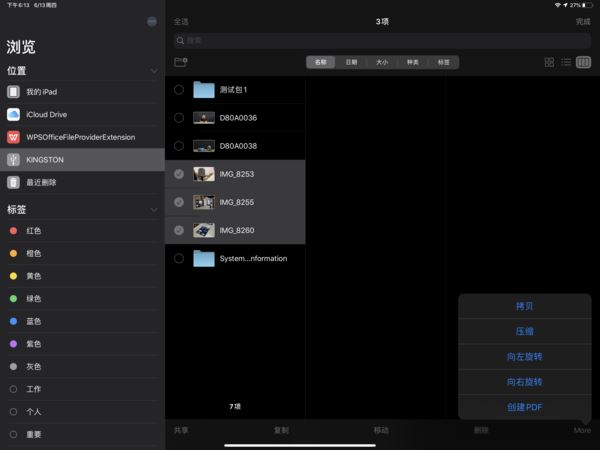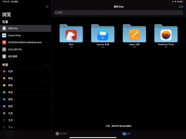好在iPadOS的出現(xiàn),讓我們看到了蘋果的改變。首先iPadOS中的“文件App”經(jīng)過全新設(shè)計(jì)后變得更加開放,我們可以在App中管理所有內(nèi)部與外部存儲(chǔ)的文件,使用起來也會(huì)更加順手。而且“文件App”還支持類似Mac的分欄顯示,我們可以在一塊屏幕上直接查看不同層級(jí)的文件夾以及和文件詳情,甚至瀏覽圖片的exif信息等。而且“文件App”也支持將多個(gè)不同的文件打包,方便我們將壓縮包發(fā)送給其他人。