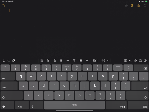 經(jīng)過我的實(shí)測(cè),使用iPadOS的滑動(dòng)鍵盤時(shí),它總能準(zhǔn)確識(shí)別到我要輸入的內(nèi)容,而且在輸入中文時(shí),即使我們連續(xù)輸入一段話也不會(huì)擔(dān)心識(shí)別錯(cuò)誤,這樣的準(zhǔn)確率還有什么讓人擔(dān)心的呢?