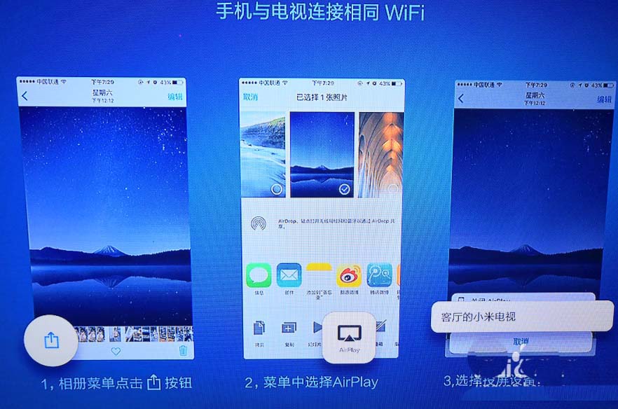 3、點擊后在投屏界面可以看到投屏的步驟,將iPad與電視處于同WiFi環境下。