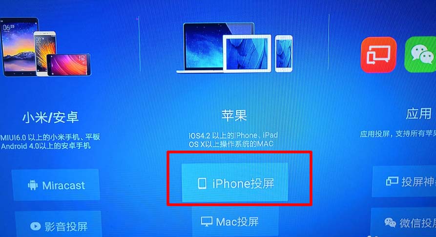 2、進入到無線投屏界面后,可以看到投屏設備的類型,點擊iPhone鎖屏的選項進入。