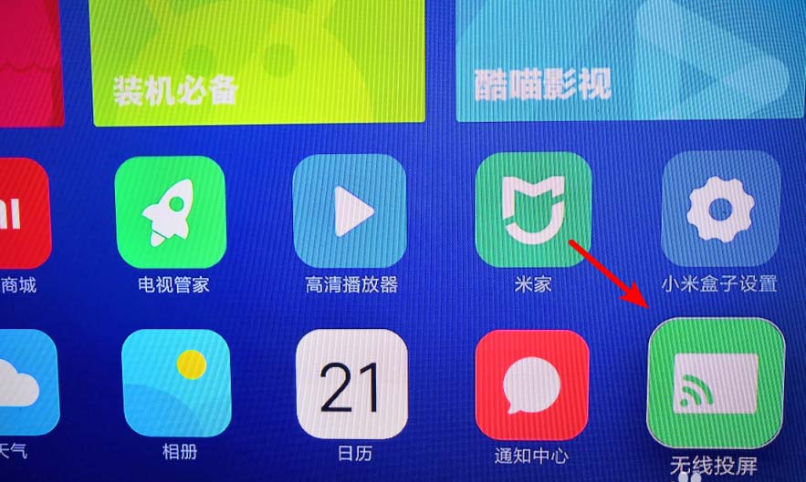 1、打開智能電視后,在電視中找到無線投屏的應用進入。