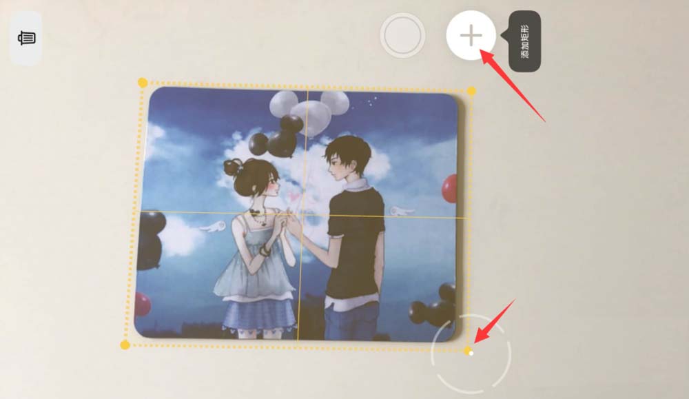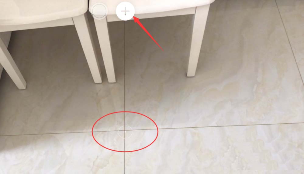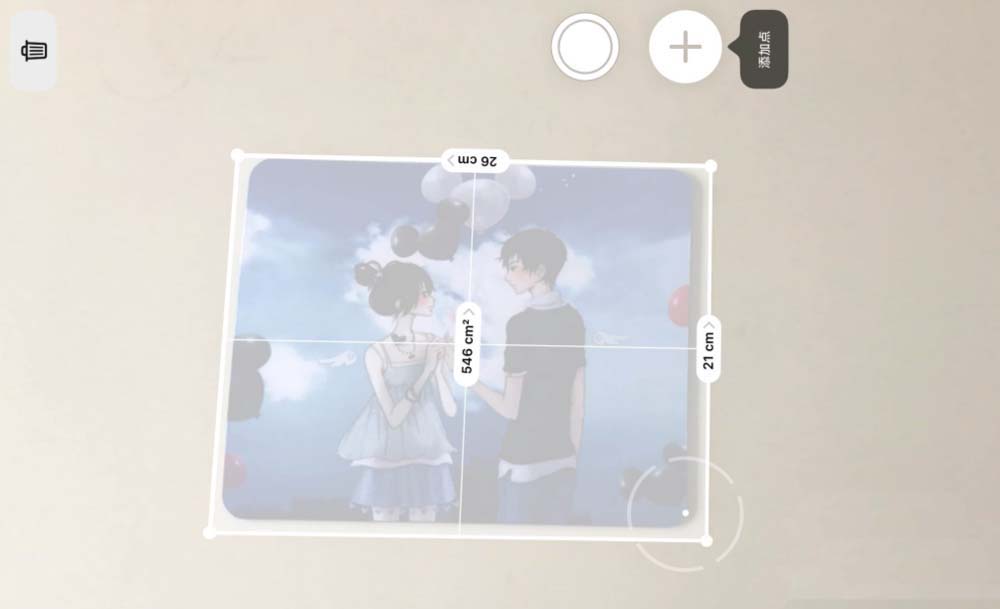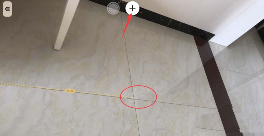 3、我們將蘋果iPad的攝像頭對著我們要測量的物體,注意光圈必須對準我們想要測量物件的某個起始點,然后點擊屏幕上方的加號+