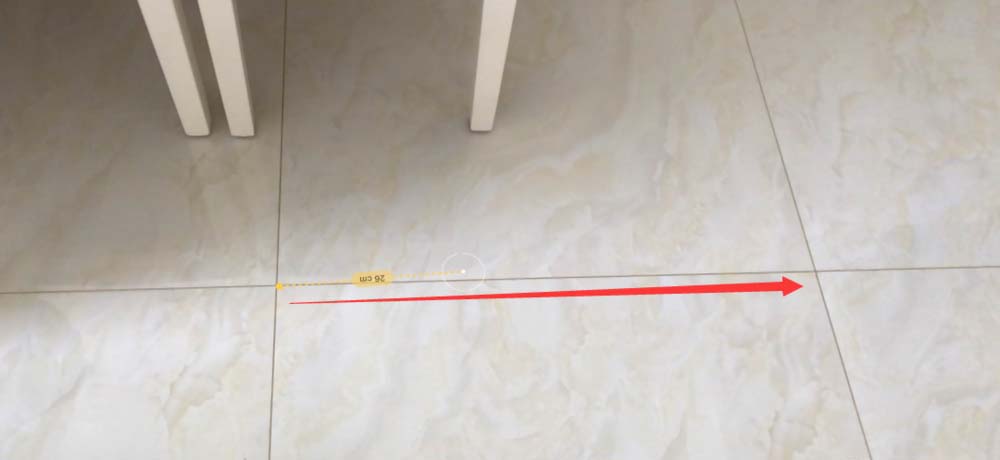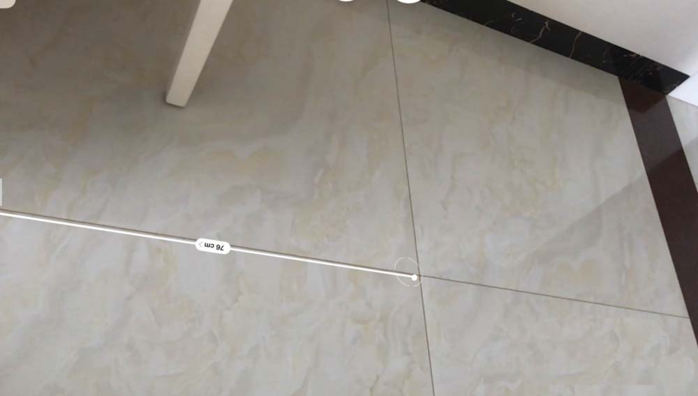 6、然后蘋果iPad沿著該物件的邊移動,測量儀將會實時測出光標所在位置的長度