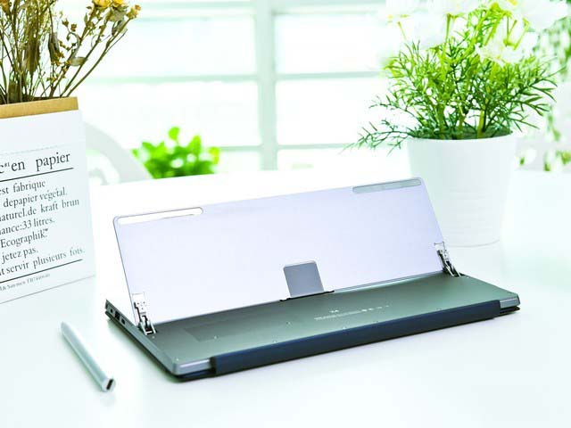 臺電 X4機身背面采用金屬材質,還配有無級可調節支架,調節角度高達135°,應用支架可以在多種場景下使用,配合人體工學磁吸鍵盤,臨時的文字辦公需求,也能快速舒適的輸入。