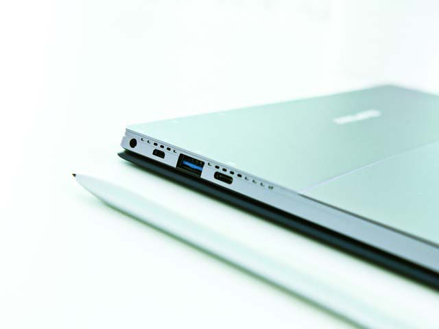 得益于屏幕貼合工藝和先進設計技術,臺電X4的厚度僅為8.9mm,非常的輕薄,整機的重量也控制得當,僅840g左右,便攜性也大大提高,帶著出差也不會覺得太重。