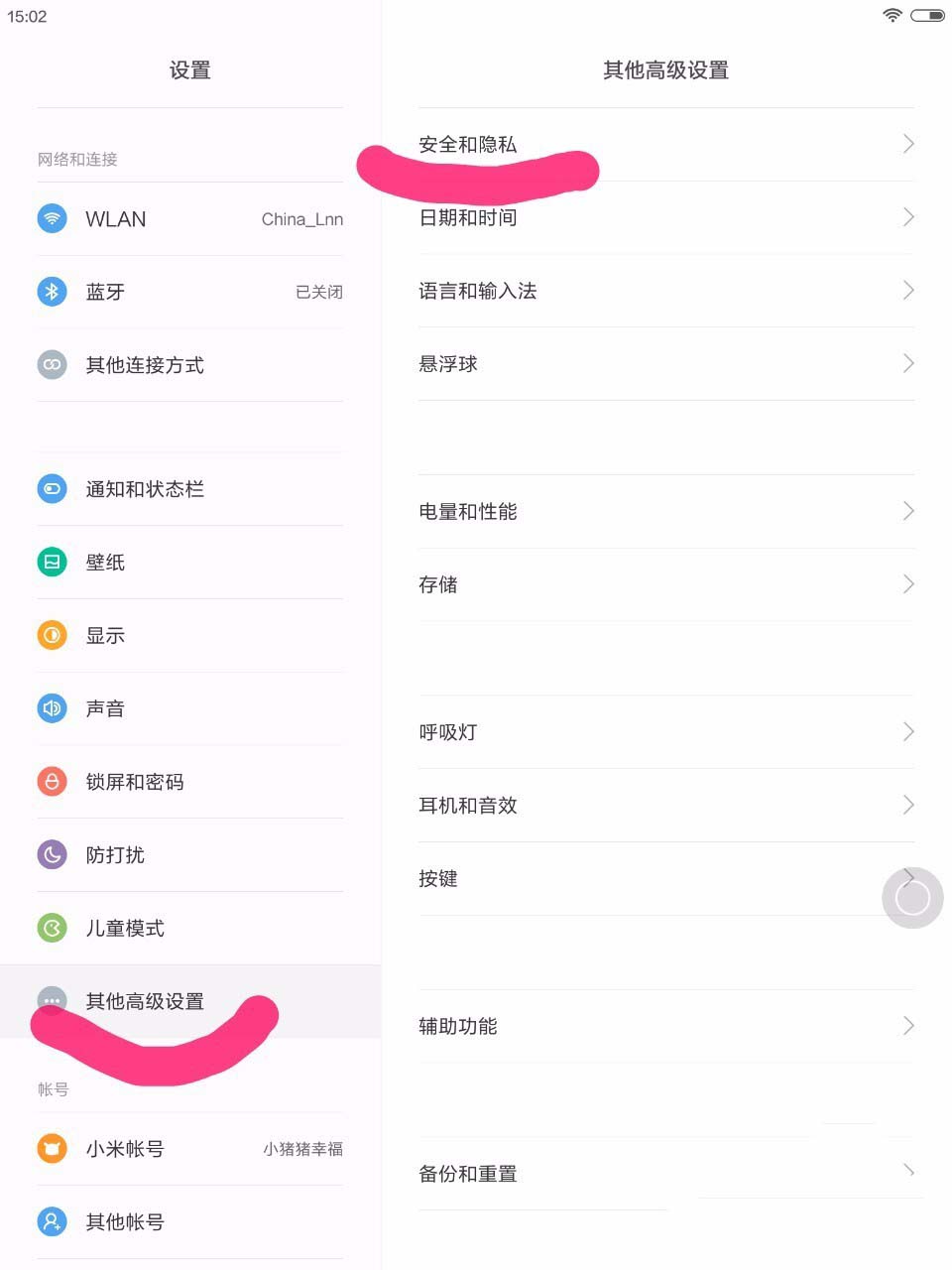 1、打開設置面板--其他高級設置--安全和隱私設置