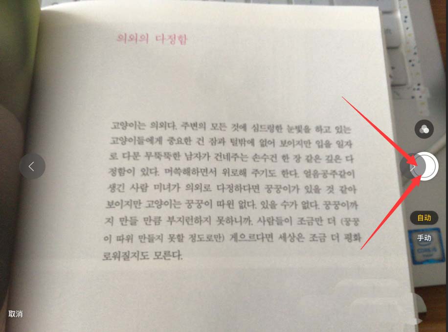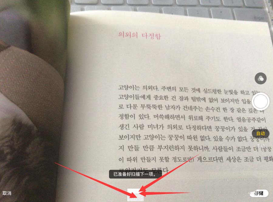5、將iPad攝像頭對(duì)準(zhǔn)你要掃描的文稿。手指點(diǎn)擊右側(cè)的白色圓圈。