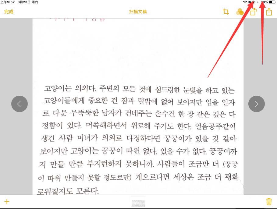 8、掃描文件被打開。我們手指放在iPad的右上角,向下拖動(dòng)。