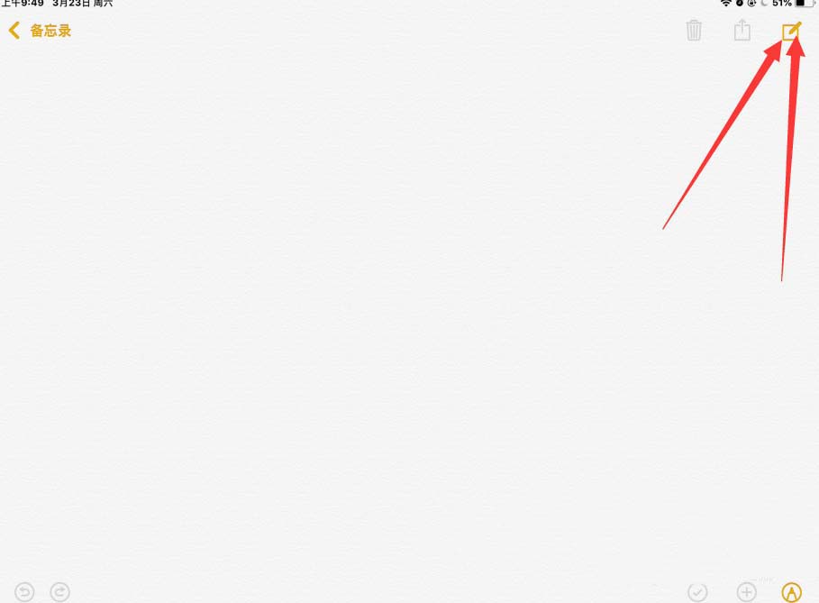 2、備忘錄打開。通過仔細(xì)觀察,我們找到右上角的一個(gè)小方塊圖標(biāo)。手指點(diǎn)擊它。