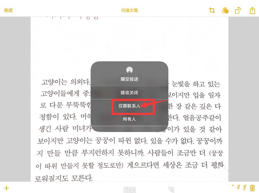11、現(xiàn)在iPad上面的隔空投送就被打開了。我們就可以將我們剛才掃描的文件發(fā)出去了。是不是很簡單呢?趕緊試一下吧。