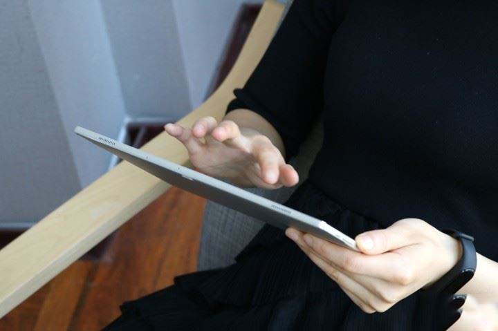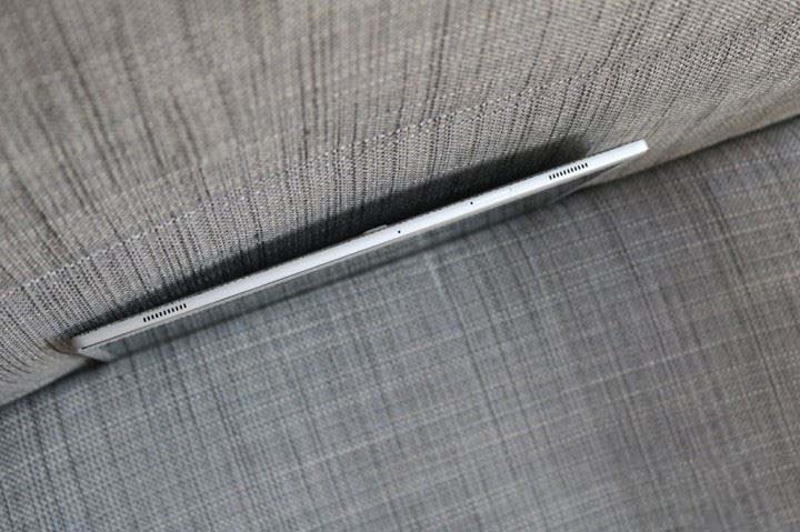 從背面可以看到整個(gè)機(jī)身的金屬材質(zhì),表面采用了金屬磨砂工藝,同時(shí)增強(qiáng)了握感。平板一直沿用金屬質(zhì)感的機(jī)身,這也是相比于其他材質(zhì)耐久度更高以及對(duì)機(jī)身保護(hù)更到位。