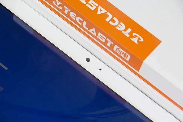 臺電T20的正面外觀與主流平板還是頗為相似,邊框采用了白色,頂部為前置攝像頭與光線傳感器,用來感知光線自動調(diào)節(jié)屏幕亮度。