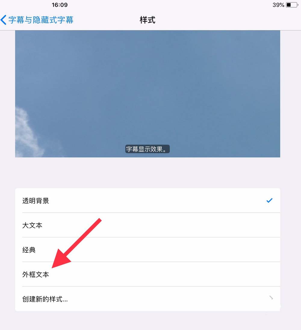 6、在打開的字幕樣式設(shè)置頁面中,我們可以看到當(dāng)前默認(rèn)的字幕是有透明背景的,自己可以根據(jù)情況選擇其他對應(yīng)的字幕樣式,上方就可以看到預(yù)覽效果