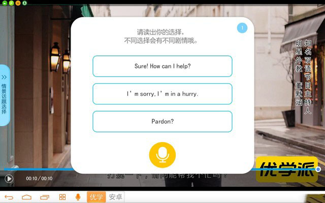 優學派“外教帶你說”情景對話界面