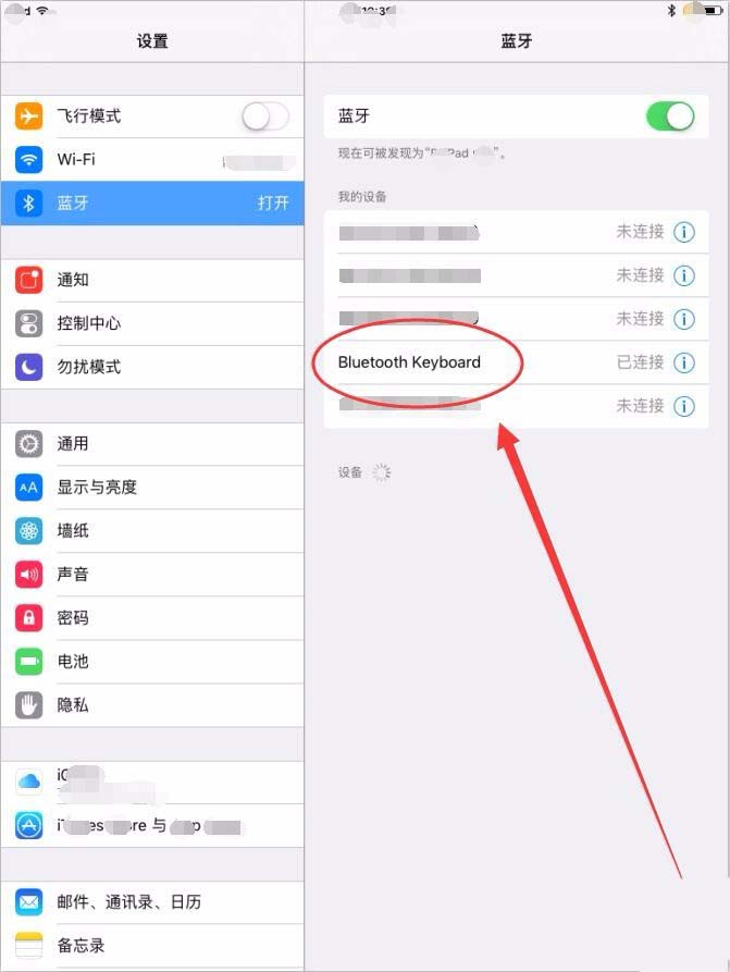 7、藍牙界面中,會提示已連接到藍牙鍵盤,說明鍵盤與iPad連接成功。